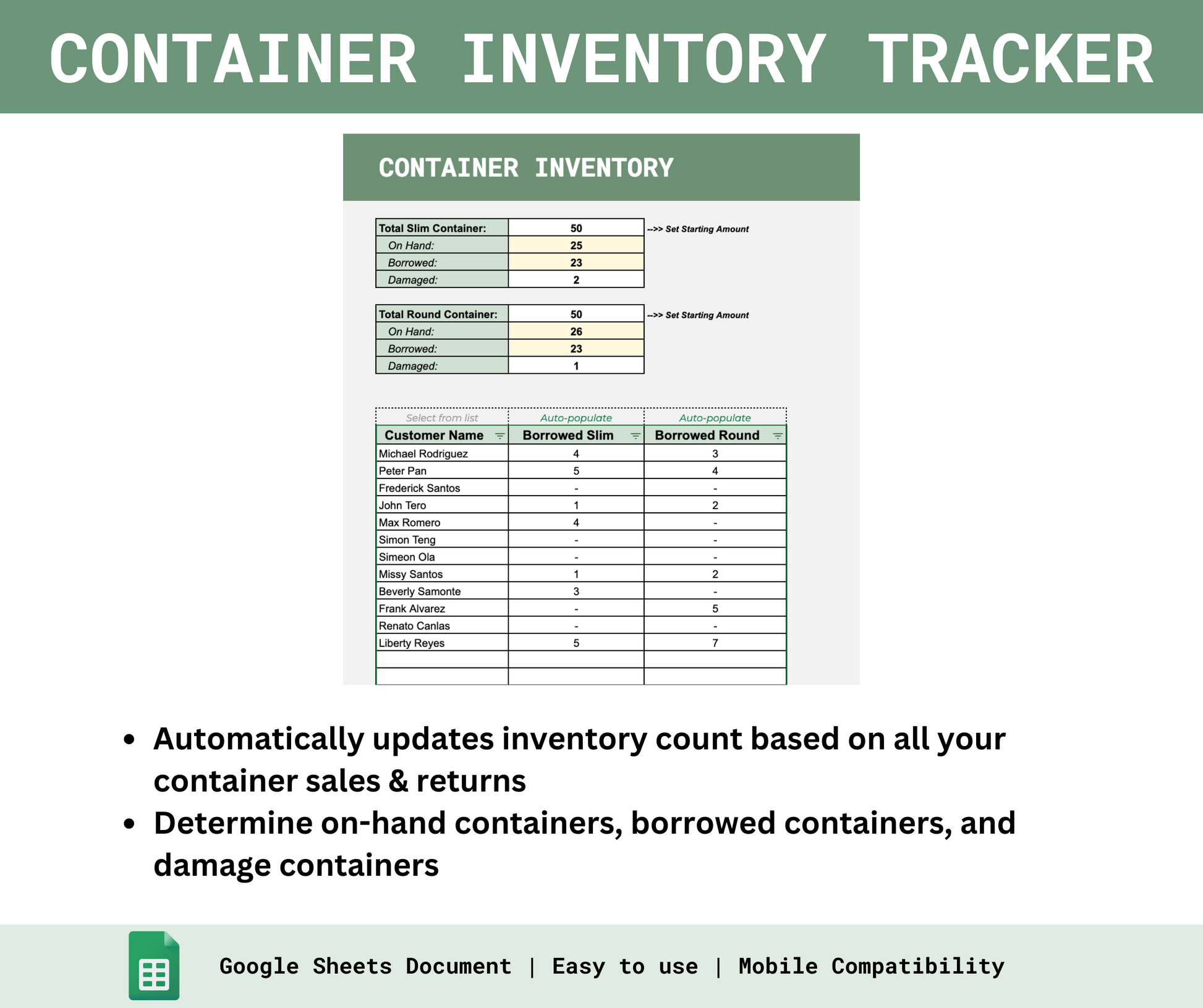 - Track Container Inventory - automatically updates inventory count based on container sales & returns