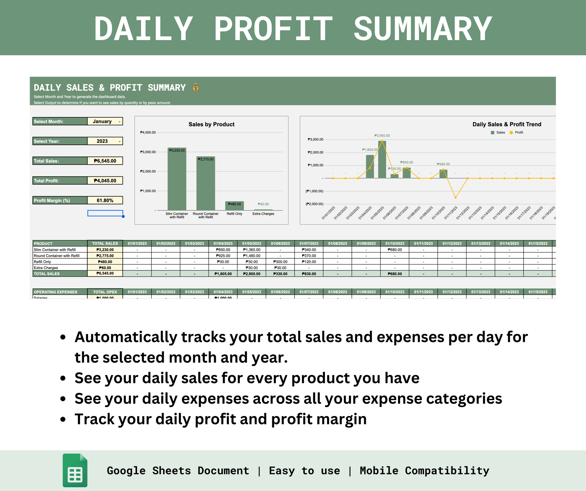 - Daily Profit Summary - Easily track your daily sales per product, expenses and profits
